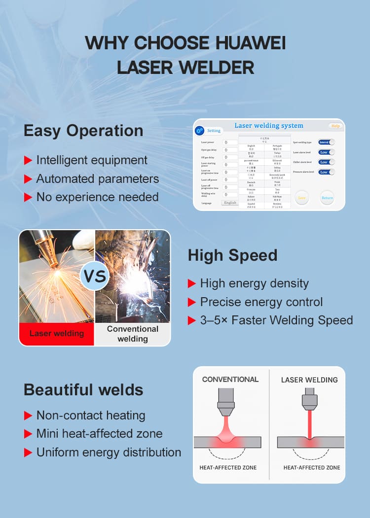 4. کام کرنے اور سیکھنے میں آسان: ہینڈ ہیلڈ لیزر ویلڈنگ آپریشن آسان اور سیکھنے میں آسان ہے ، جس سے مزدوری کے اخراجات کی بچت ہوتی ہے اور تیز رفتار تربیت اور شمولیت کے ل suitable موزوں ہے۔